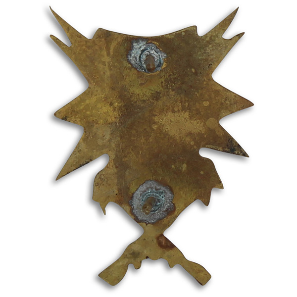 Wartime, Vietnamese manufactured, Military Assistance Command Vietnam Studies and Observations Group (MAC V SOG), Command and Control Central (CCC), brass body beer-can. The insignia measures about 1 1/2 tall with two post on the reverse. (APM-1135)