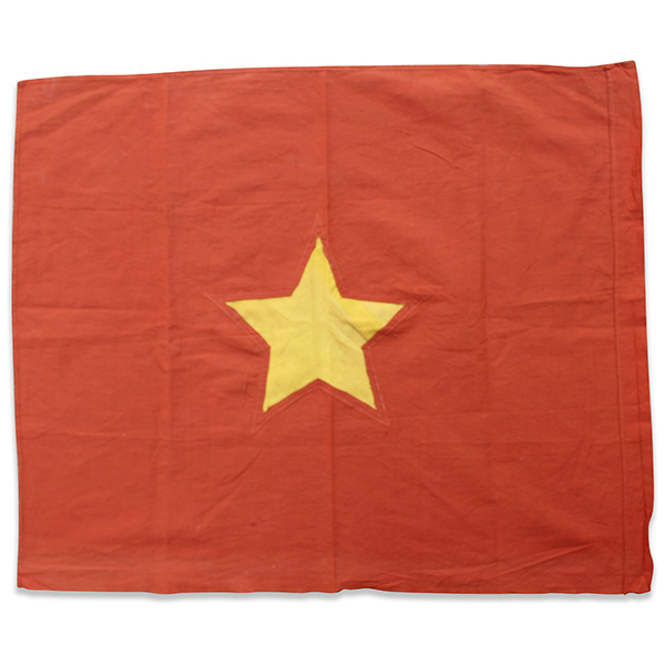 Wartime, cotton body, two sided, North Vietnamese flag that measures about 26 X 31 inches and shows honest wear and fading. (APFB-1012)