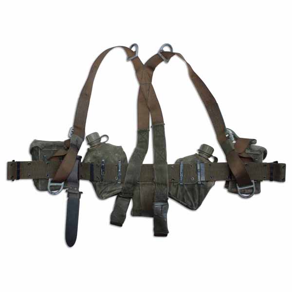 Wartime, rigger manufactured STABO extraction harness that is attributed to a Project Delta (B-52) veteran. The harness is just as I purchased it from the veteran with modified canteen covers that sit at an angle making them easier to retrieve, a cross guard marked Ka Bar, MK2 fighting knife, and 1969 dated hardware. The leg / crotch straps are folded and taped. A great piece to find. The rig will come with a Letter of Authenticity that details the veteran’s service. (inventory number APFG-168)